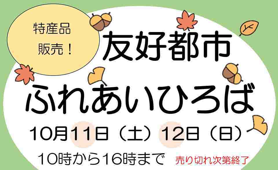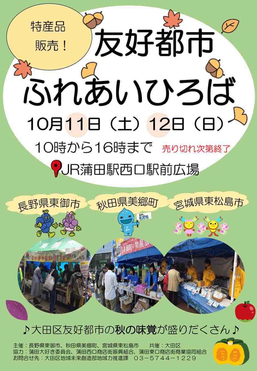 ▼内容:大田区との友好都市である長野県東御市、秋田県美郷町、宮城県東松島市が秋の味覚の販売を実施します。売り切れ次第終了です。