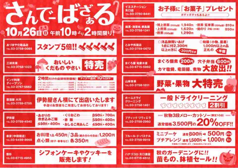 矢口の渡商店街が「さんでーばざある」を開催します。今回はハロウィーンイベントを同時開催!子どもから大人までフリー仮装参加でばざある参加各店でお菓子がもらえます。