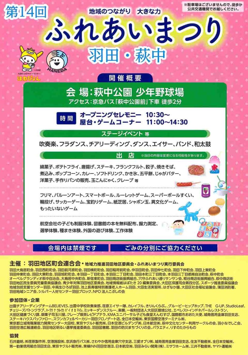 | イベント名 | ふれあいまつり羽田・萩中 |