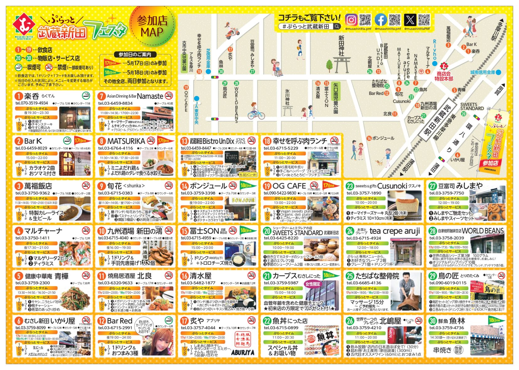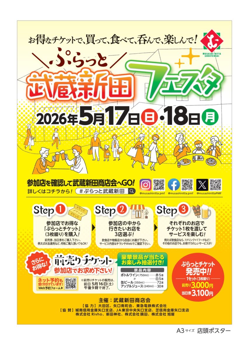 2026年5月17日(日)・18日(月)に武蔵新田商店会で「ぷらっと武蔵新田フェスタ」が開催されます♪