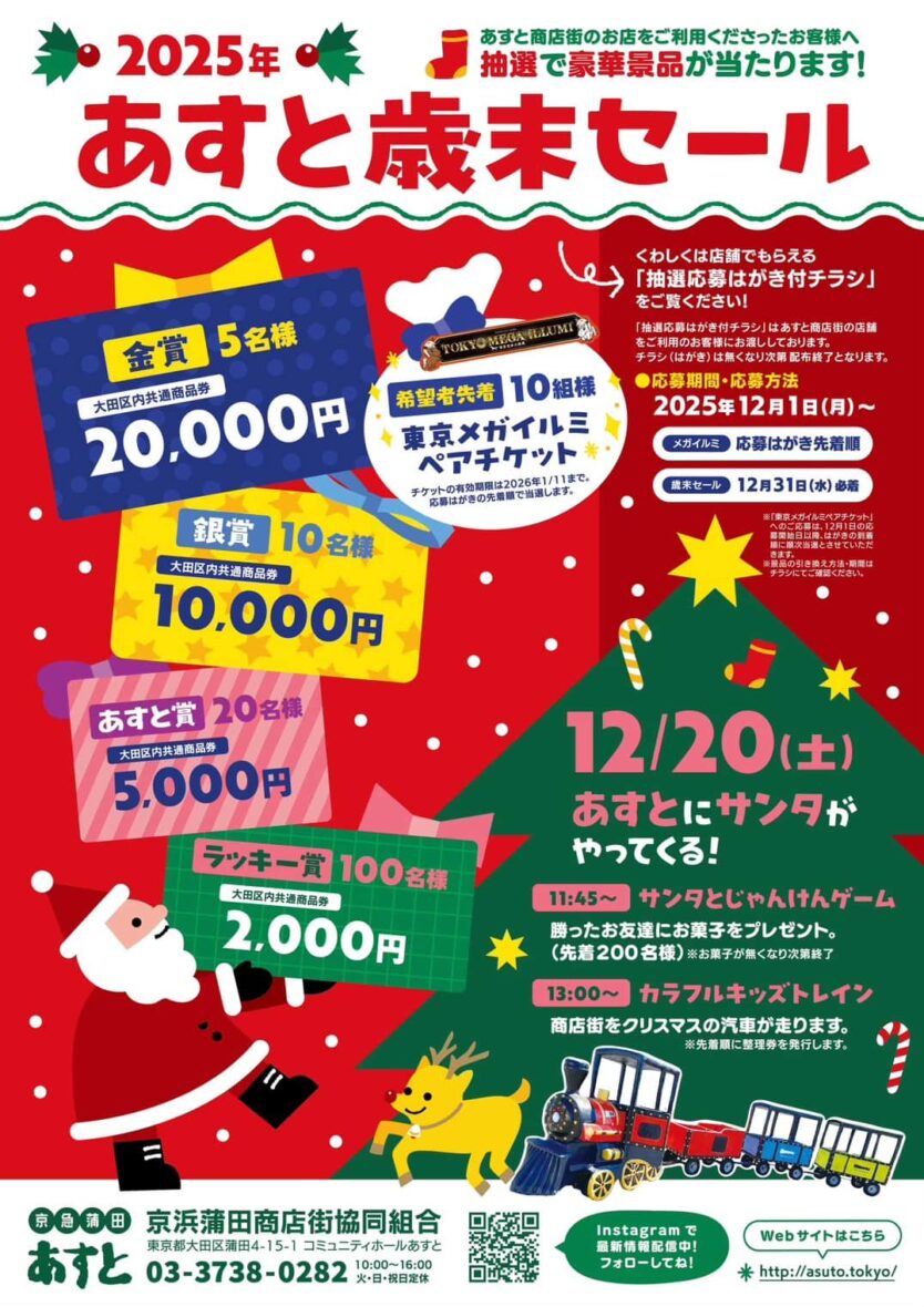 東京都大田区の京急蒲田あすと商店街(京浜蒲田商店街協同組合)で、2025年12月1日(月)~31日(水)まで「2025年あすと歳末セール」が開催されます!