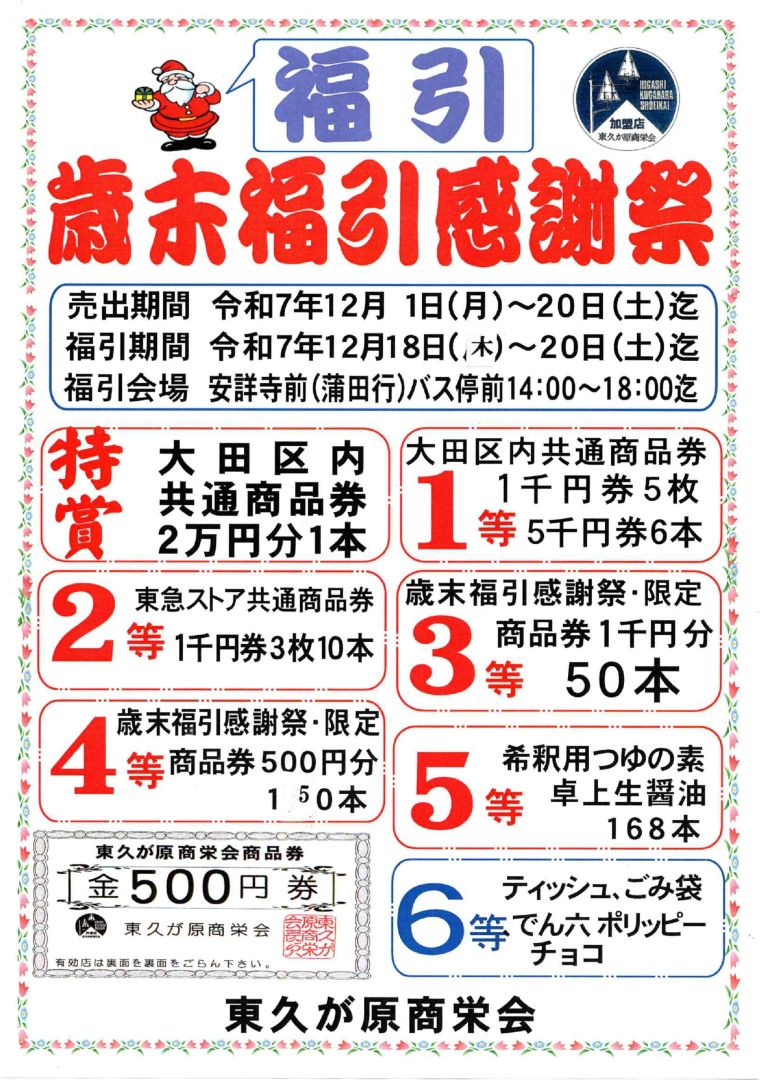 東京都大田区にある東久が原商栄会で、2025年12月1日(月)~20日(土)まで「歳末福引感謝祭」が開催されます!