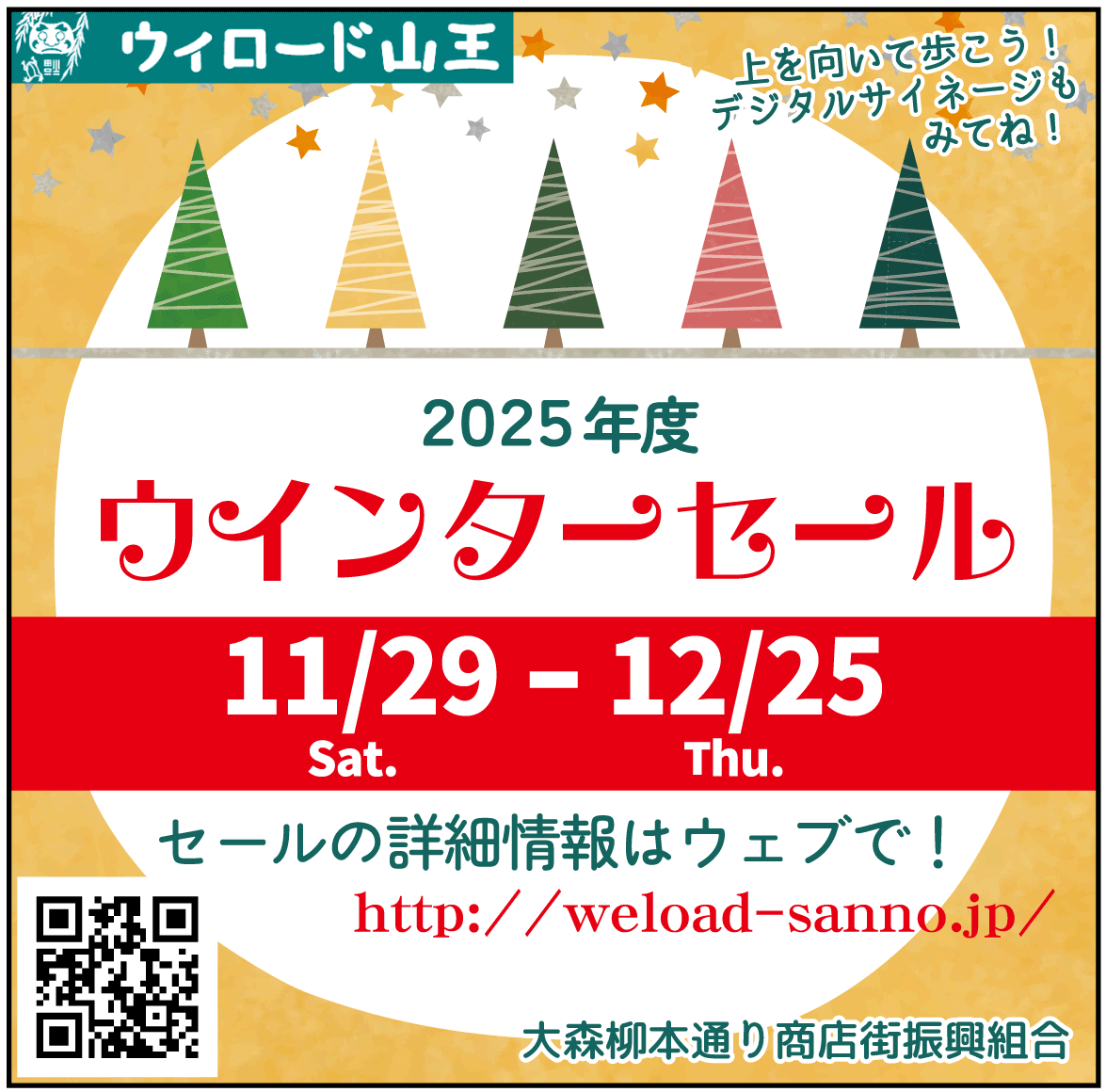 JR京浜東北線大森駅近くの山王地区にある新柳会商店街振興組合では「ウインターセール」を開催、イベントを実施します。