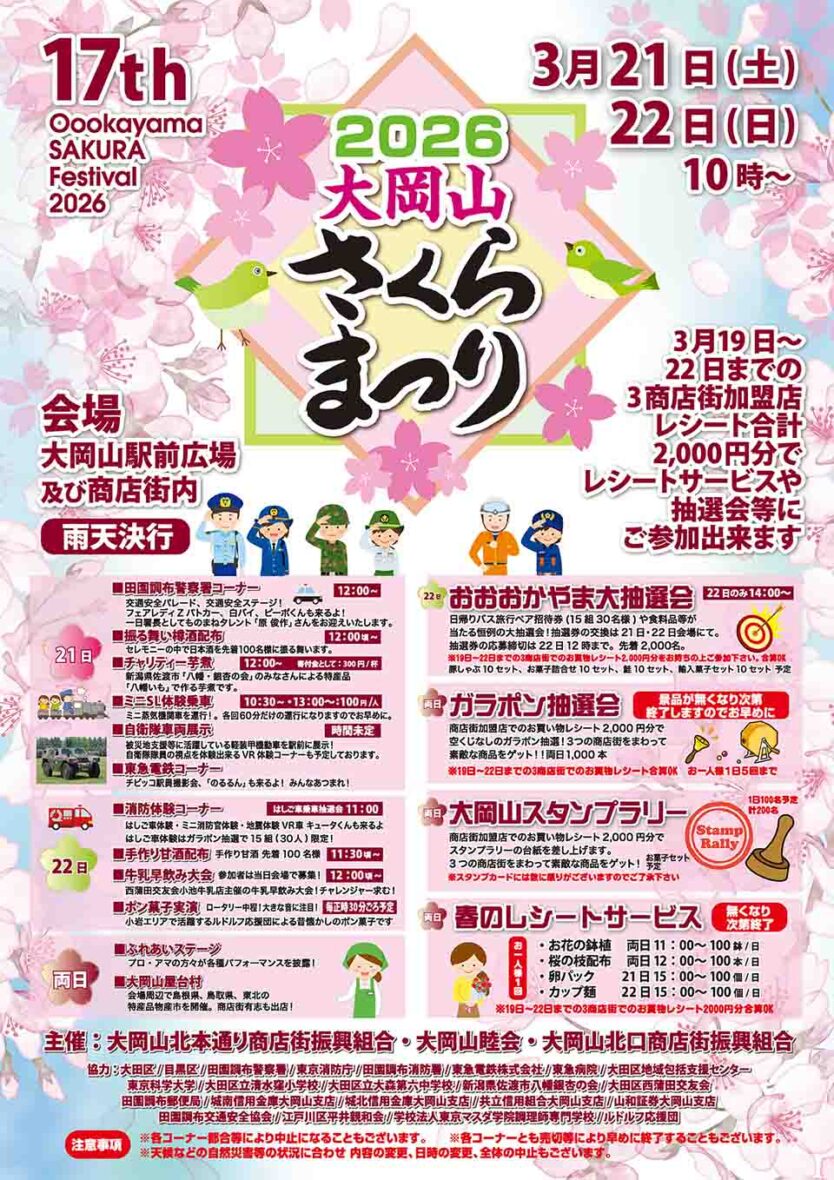 | 主催者名 | 大岡山北本通り商店街振興組合/大岡山睦会/大岡山北口商店街振興組合 |
