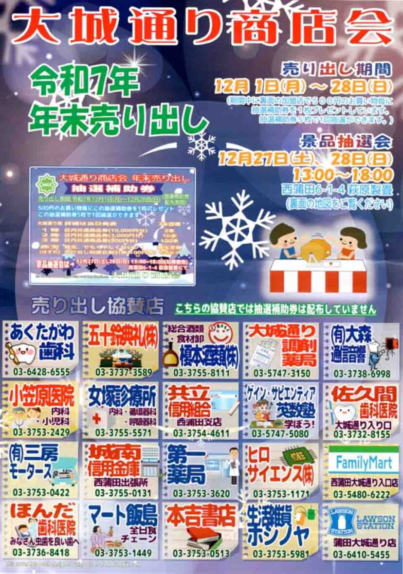 2025年12月28日(日)まで、東京都大田区西蒲田にある大城通り商店会で、「年末売り出し」が開催中です。