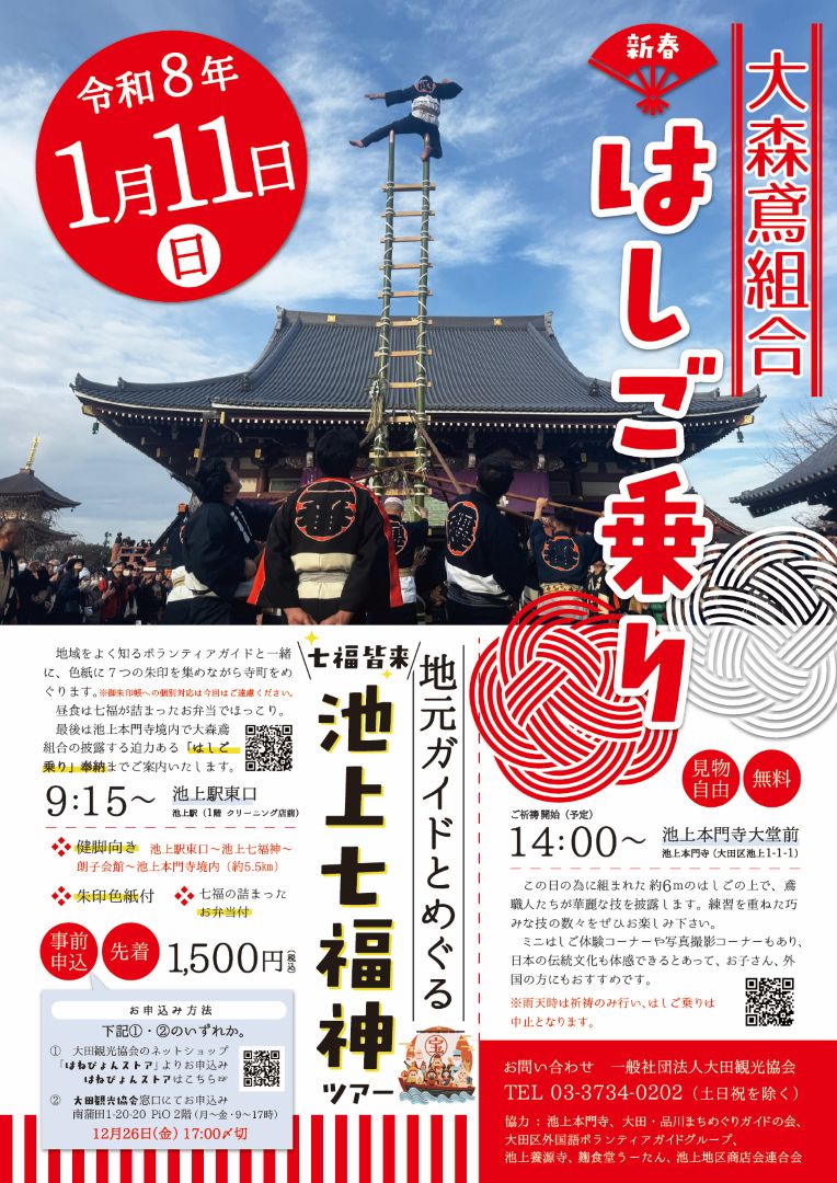 | 主催者名 | 主催:大森鳶組合/共催:一般社団法人大田観光協会/協力:池上本門寺 |