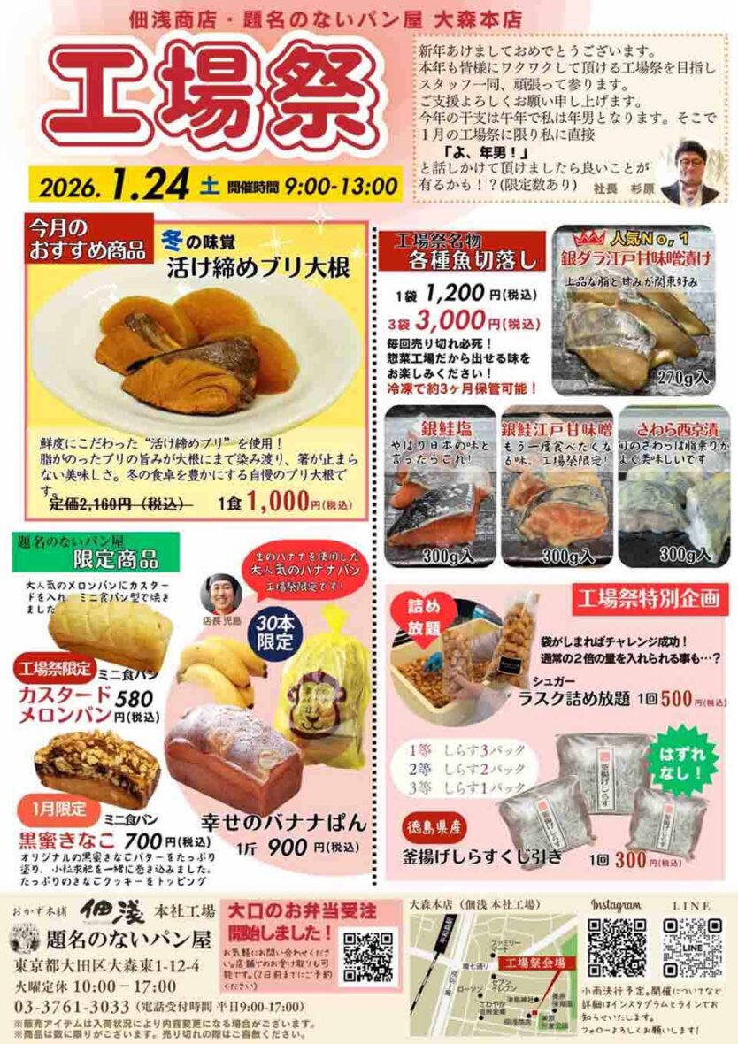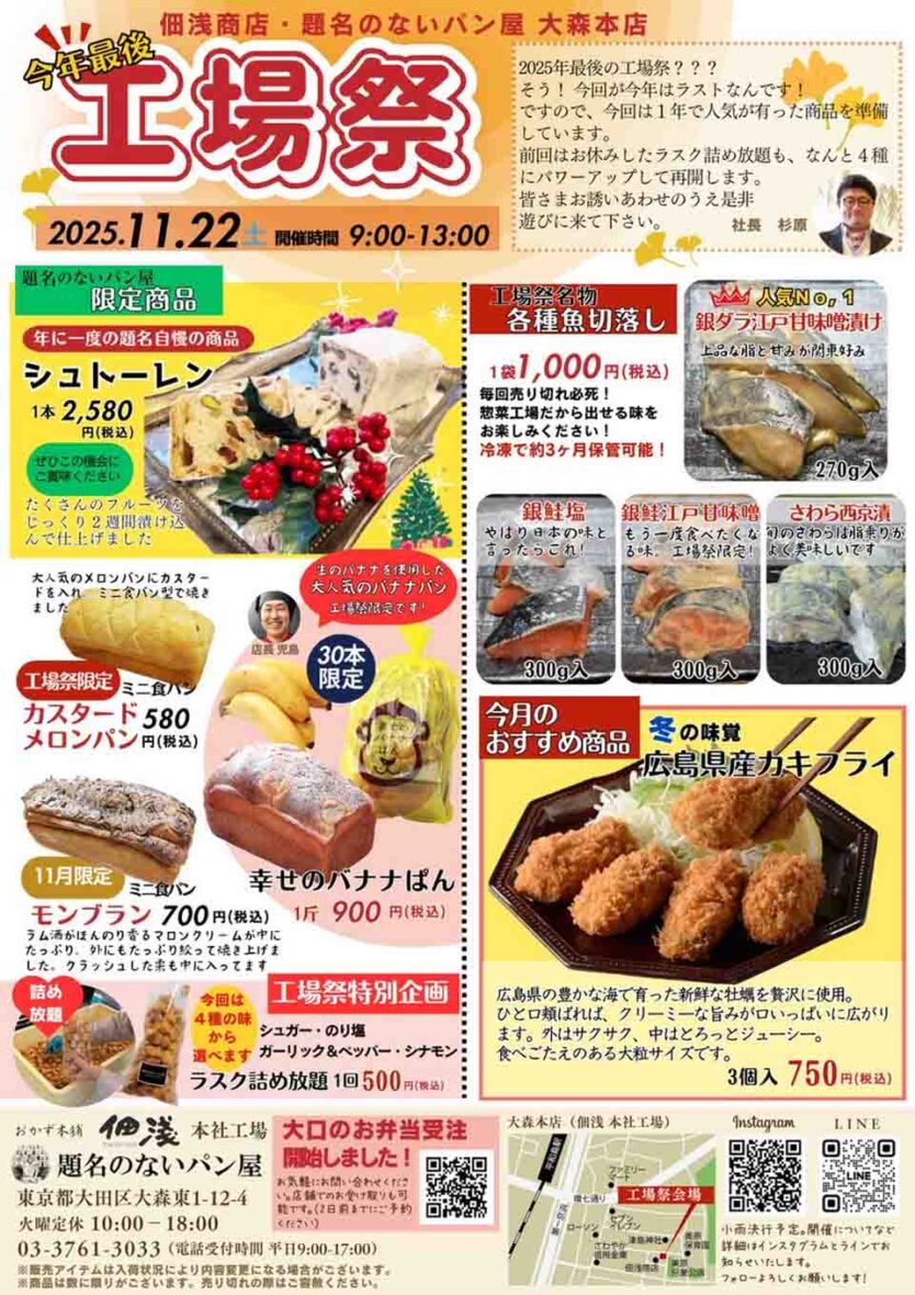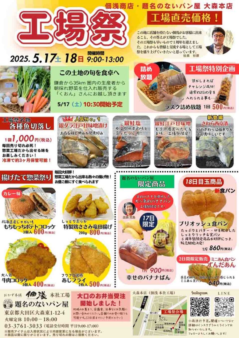 | イベント名 | 佃浅商店本社・題名のないパン屋大森本店「工場祭」 |