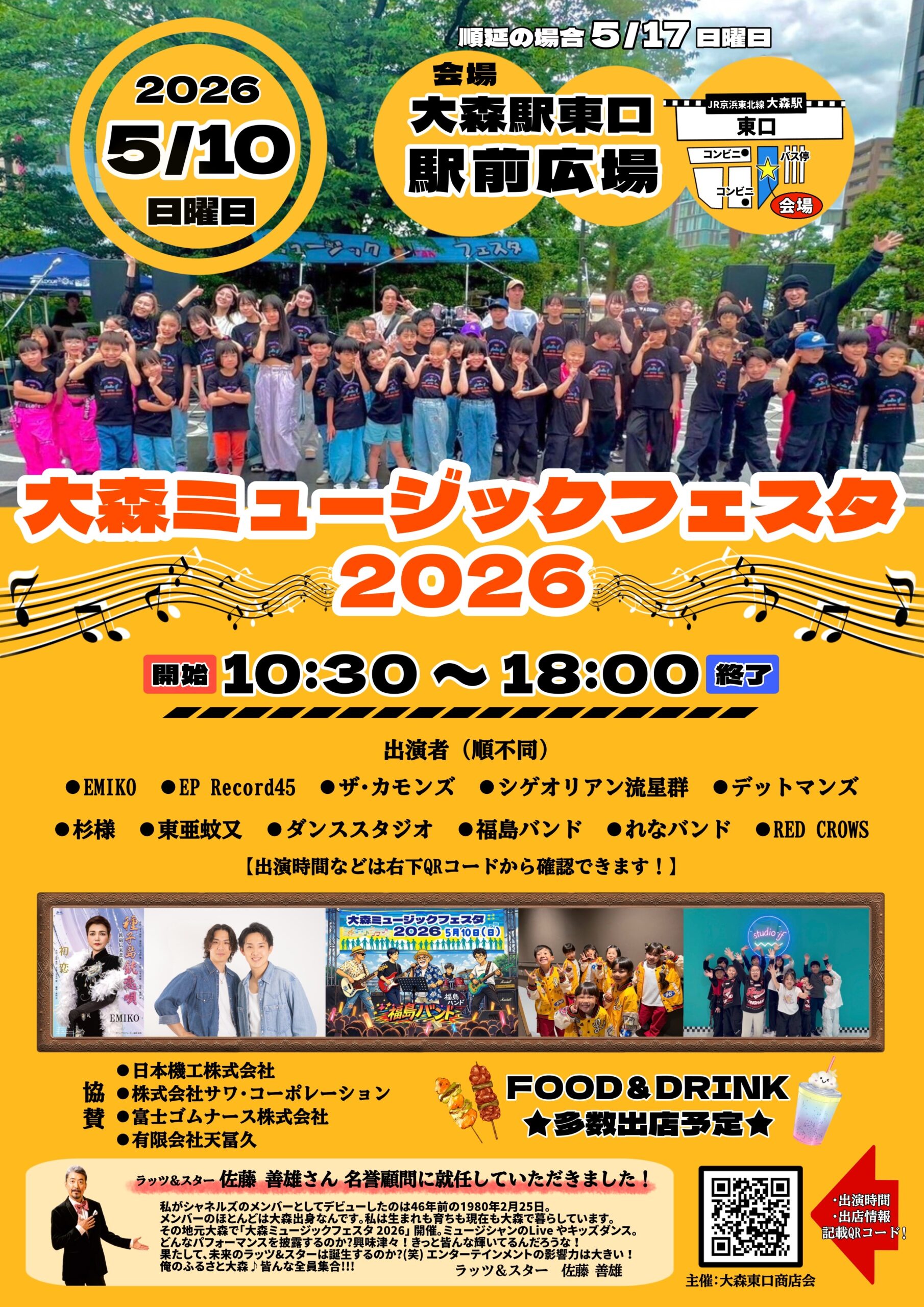 2026年5月10日(日)大森駅東口商店会が「大森ミュージックフェスタ2026」を開催します。
