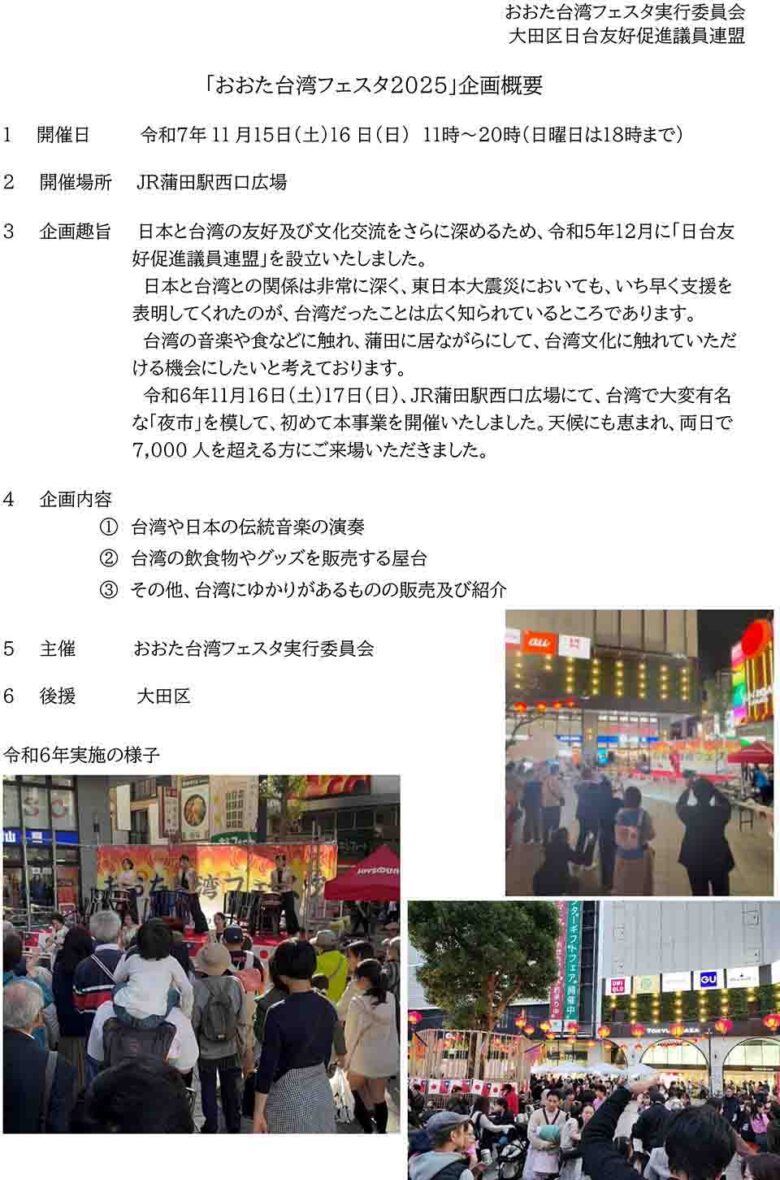 | 主催者名 | おおた台湾フェスタ実行委員会 |
