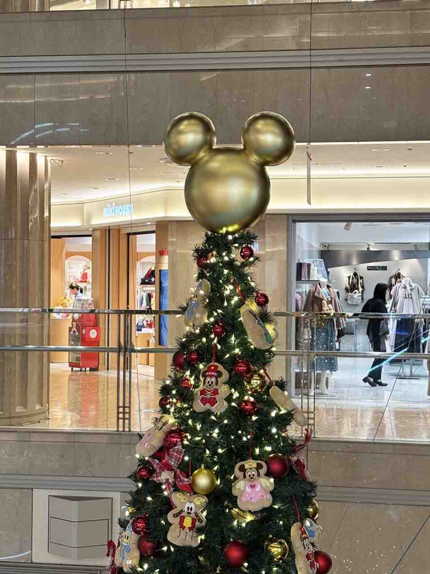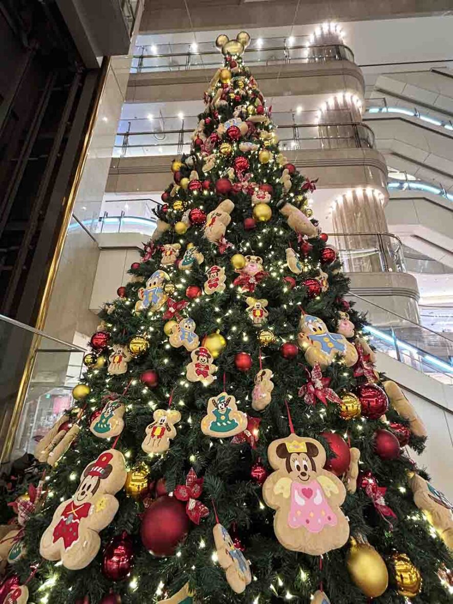 ▼オーナメント:オリジナルのコスチュームをまとったディズニーのキャラクターたちがツリーを華や かに彩ります。