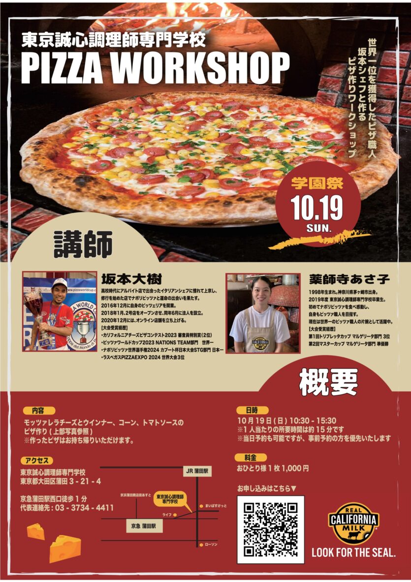 ▼内容:学園祭限定 西洋レストラン、企業物販、お土産販売コーナー、学生作品展示、日本料理レストラン、世界一のピザ職人坂本シェフと作る「ピザ教室」※要予約
