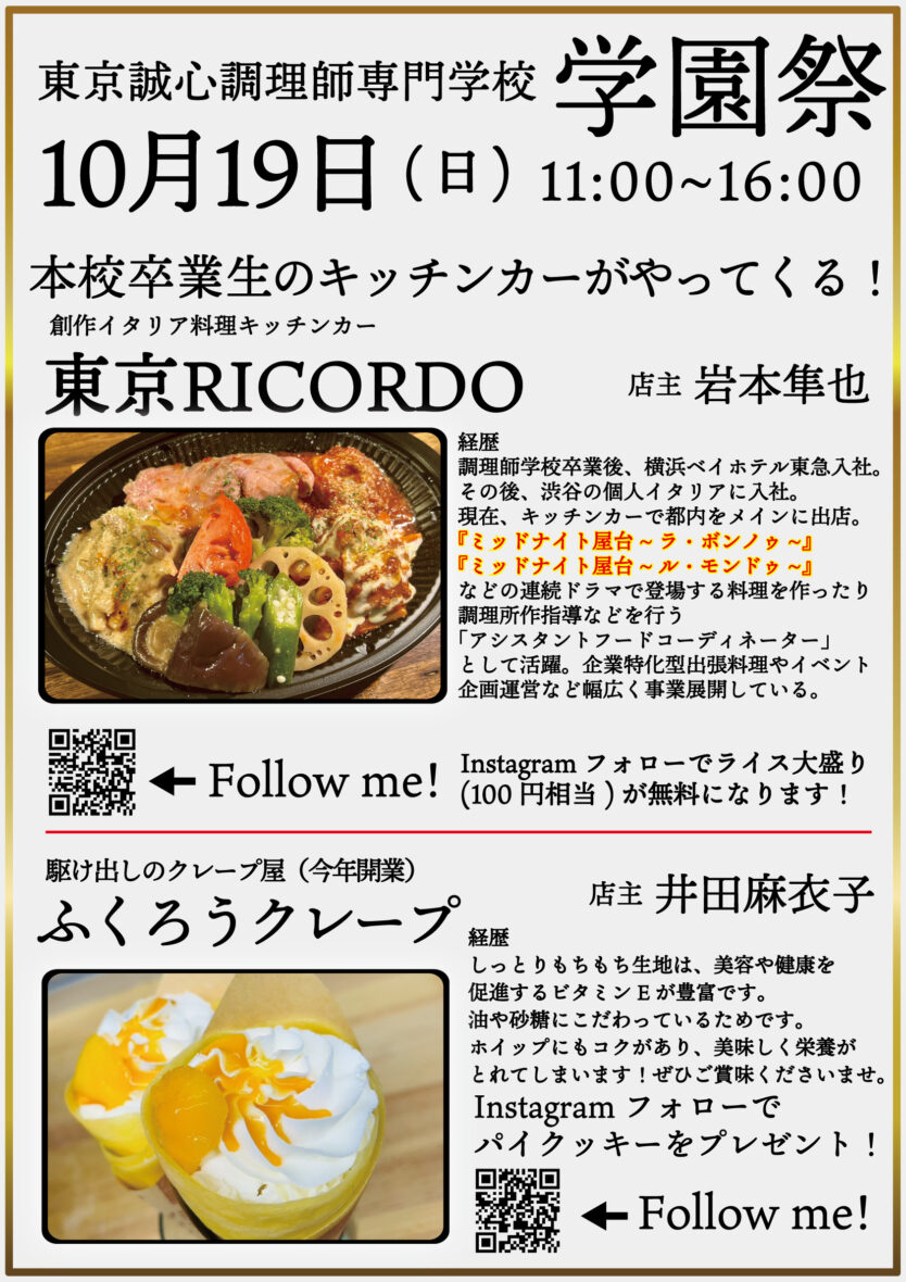 | イベント名 | 東京誠心調理師専門学校 学園祭 |