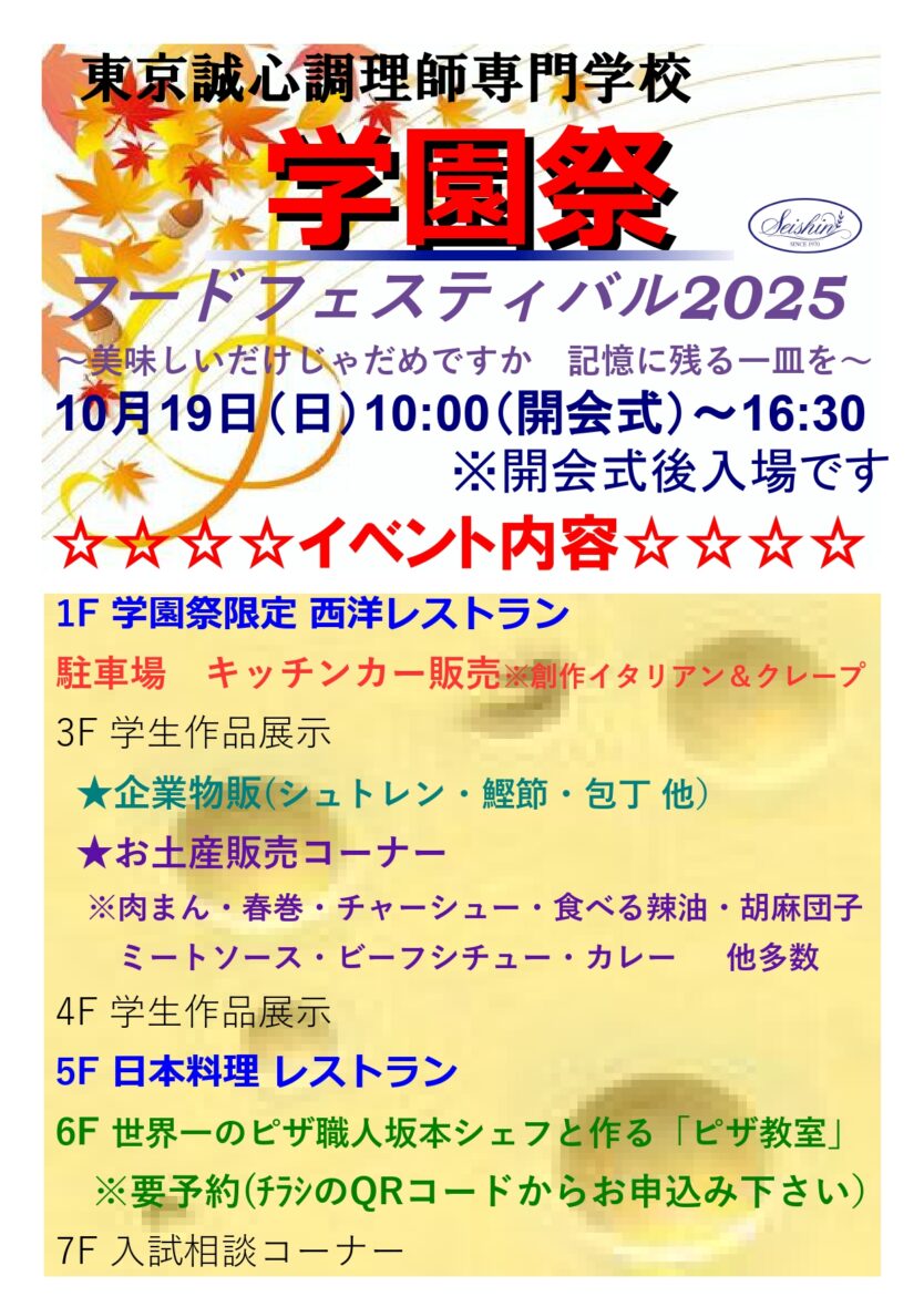 イベント名 | 東京誠心調理師専門学校 学園祭 |