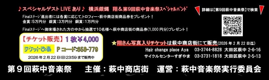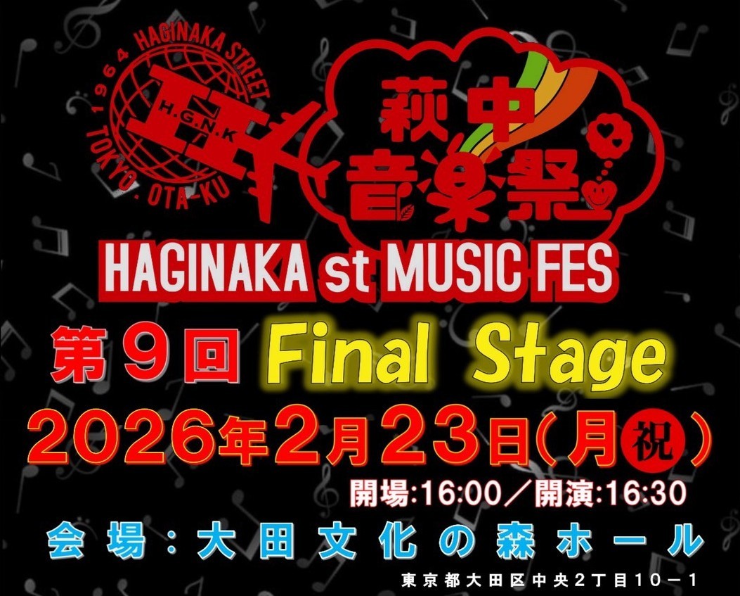 東京都大田区萩中にある萩中商店街の「第9回萩中音楽祭」が、いよいよFinal Stageを迎えます。