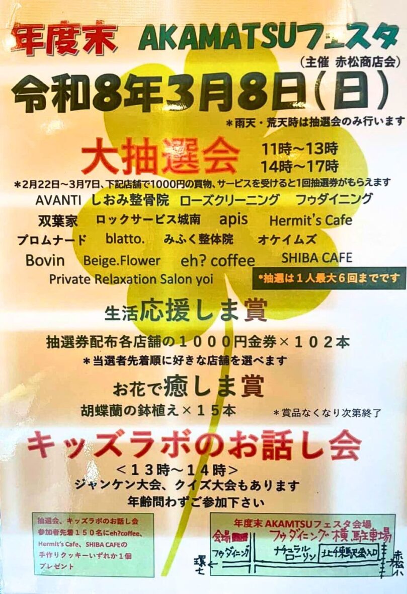 | イベント名 | 「年度末 AKAMATSUフェスタ」大抽選会&キッズイベント |