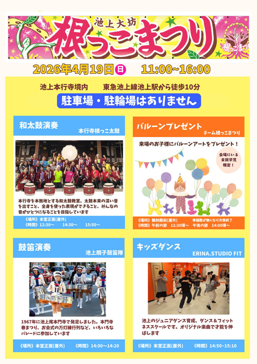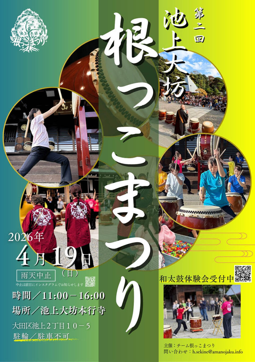池上の古刹・本行寺で和太鼓をメインにしたまつりを開催します。