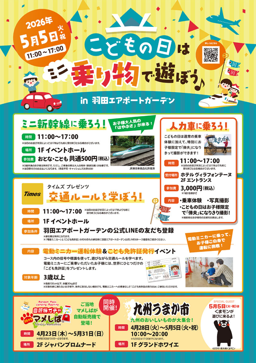 | イベント名 | こどもの日はミニ乗り物で遊ぼう♪ in 羽田エアポートガーデン |