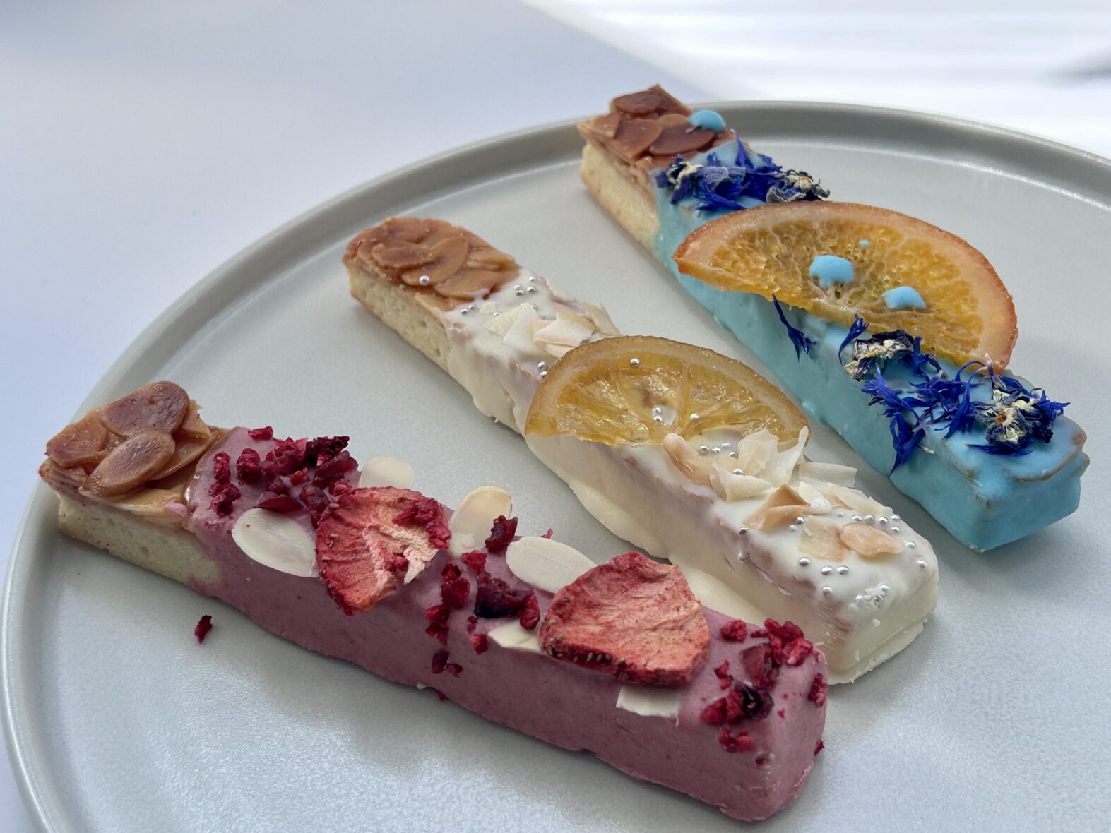 週末限定オープンのスイーツ&カフェ「CLIP」。色鮮やかなオリジナルフロランタンはマーガリン不使用で丁寧に焼き上げた生地に、チョコやナッツ、ドライフルーツを華やかにデコレーション。