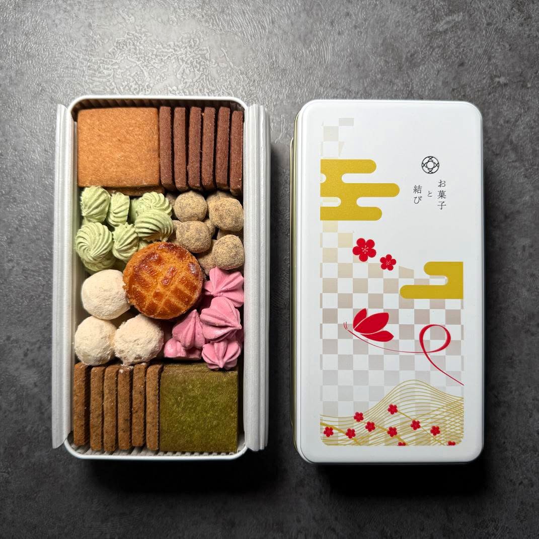 口溶けやサクサク感にこだわったサブレ入りの「結びのクッキー缶」は、これでもかと焼き菓子がたくさん詰まっていて、開けた瞬間に心も躍る贅沢なクッキー缶です。