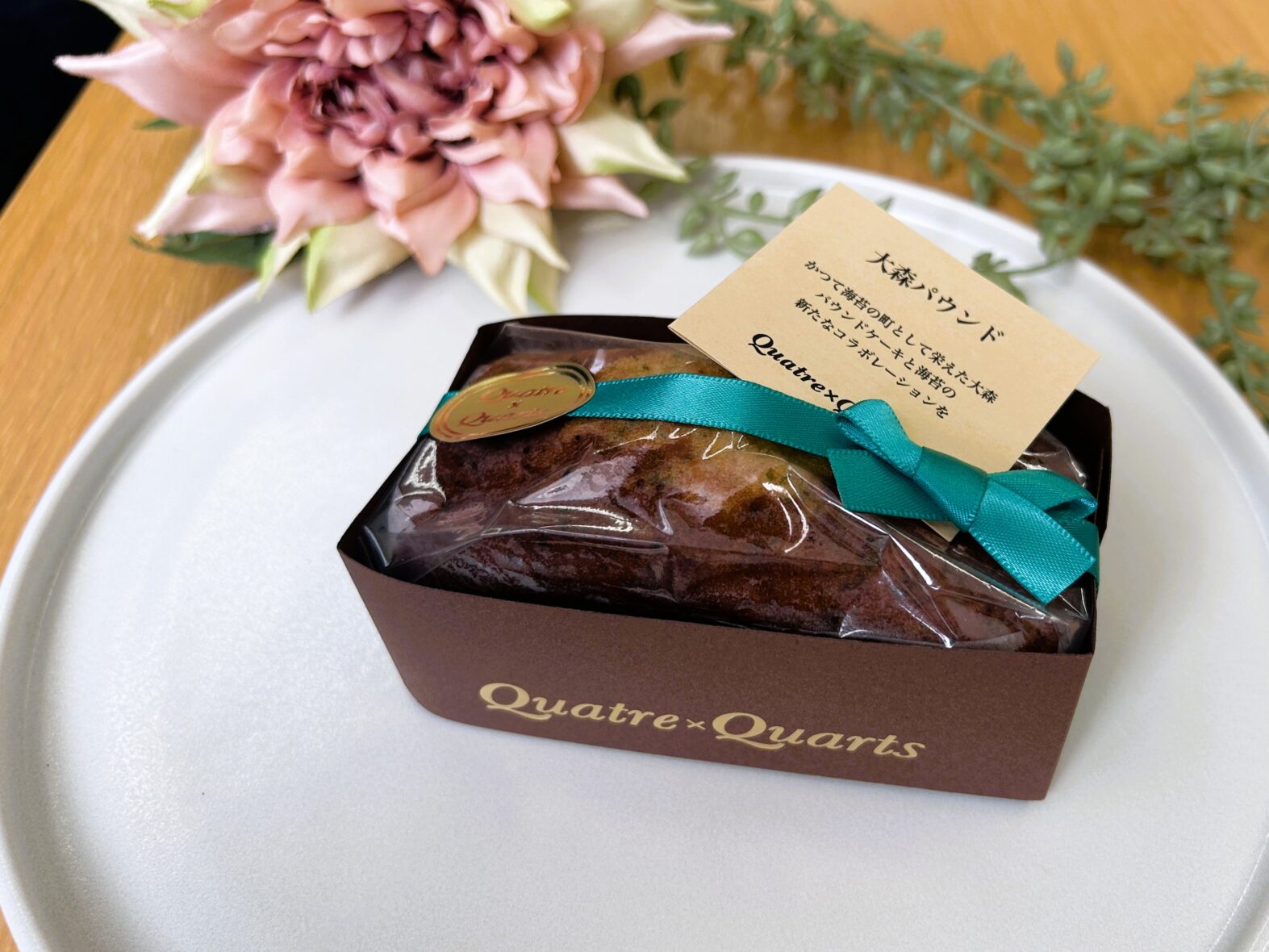 保存料や着色料を使用せず、ひとつひとつ丁寧に手作りしています。季節ごとの限定パウンドケーキは特に華やかなお味を心がけているとのこと。一番人気は定番の「大森パウンド」。白味噌ベースの生地にあおさのりが入っている大森らしい逸品です。賞味期限も2週間と長めなのでいろいろなシーンでお使いいただけます。別売りの手提げ袋は大変お洒落で高級感のあるオリジナル。プレゼントにぜひお使い下さい。