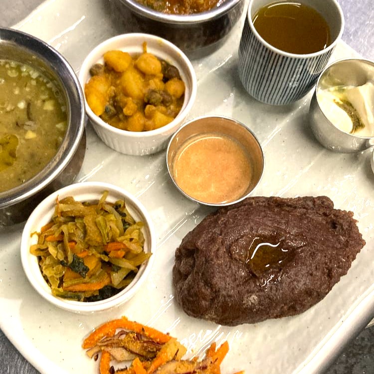 ぜひ試してほしいのが、ネパールの伝統的なおふくろの味「ディドセット」。栄養豊富なディド(フィンガーミレットと呼ばれる雑穀粉を練り上げたもの)を、カレーやスープにディップして手で食べるユニークなスタイルは、異文化の食体験そのものです。