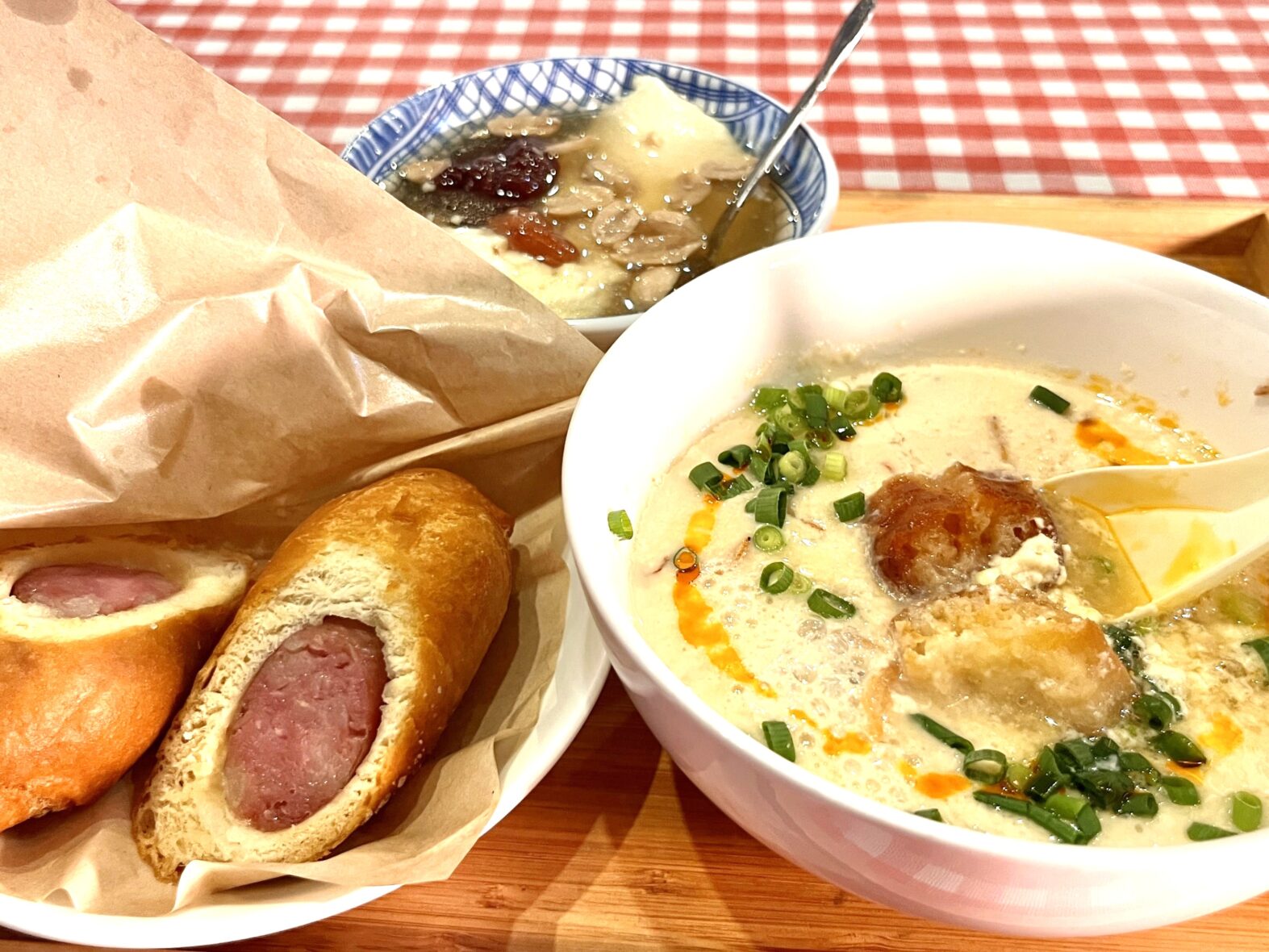 人気メニューは、「鹹豆漿(シェントウジャン)」と「台湾ソーセージロール」など選べるセット。「鹹豆漿」とは、おぼろ豆腐をスープにしたような豆乳スープで、優しい豆乳の味にラー油の風味がアクセントとなり、スプーンが止まらない美味しさです。