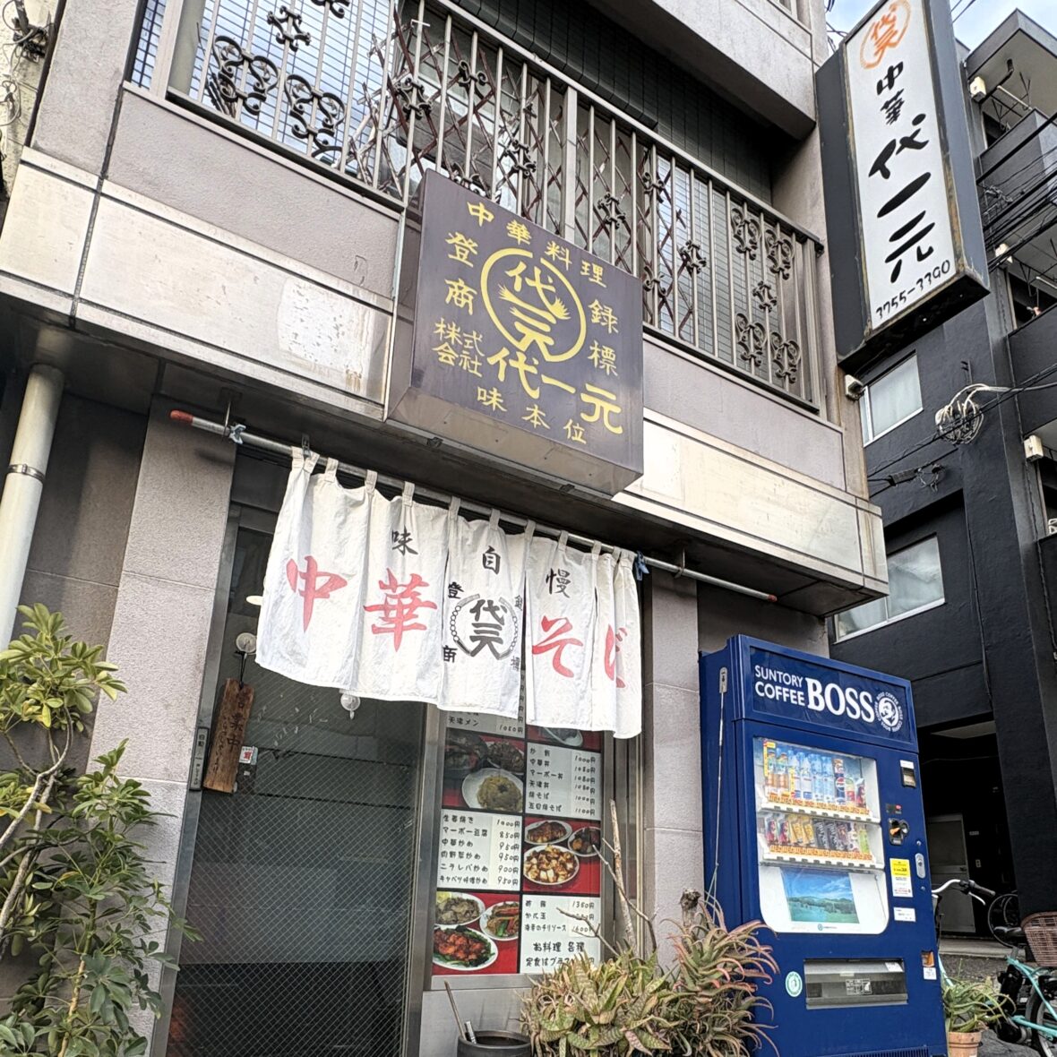 東急バス「大森税務署前」バス停から徒歩5分、旭通りを進んだ住宅街に佇む「代一元 大森店」。
