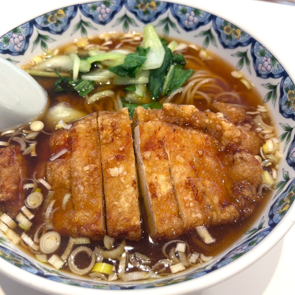 カラッと揚げた豚肉がスープにほどよくなじみ、最後まで飽きずに楽しめる一杯です。