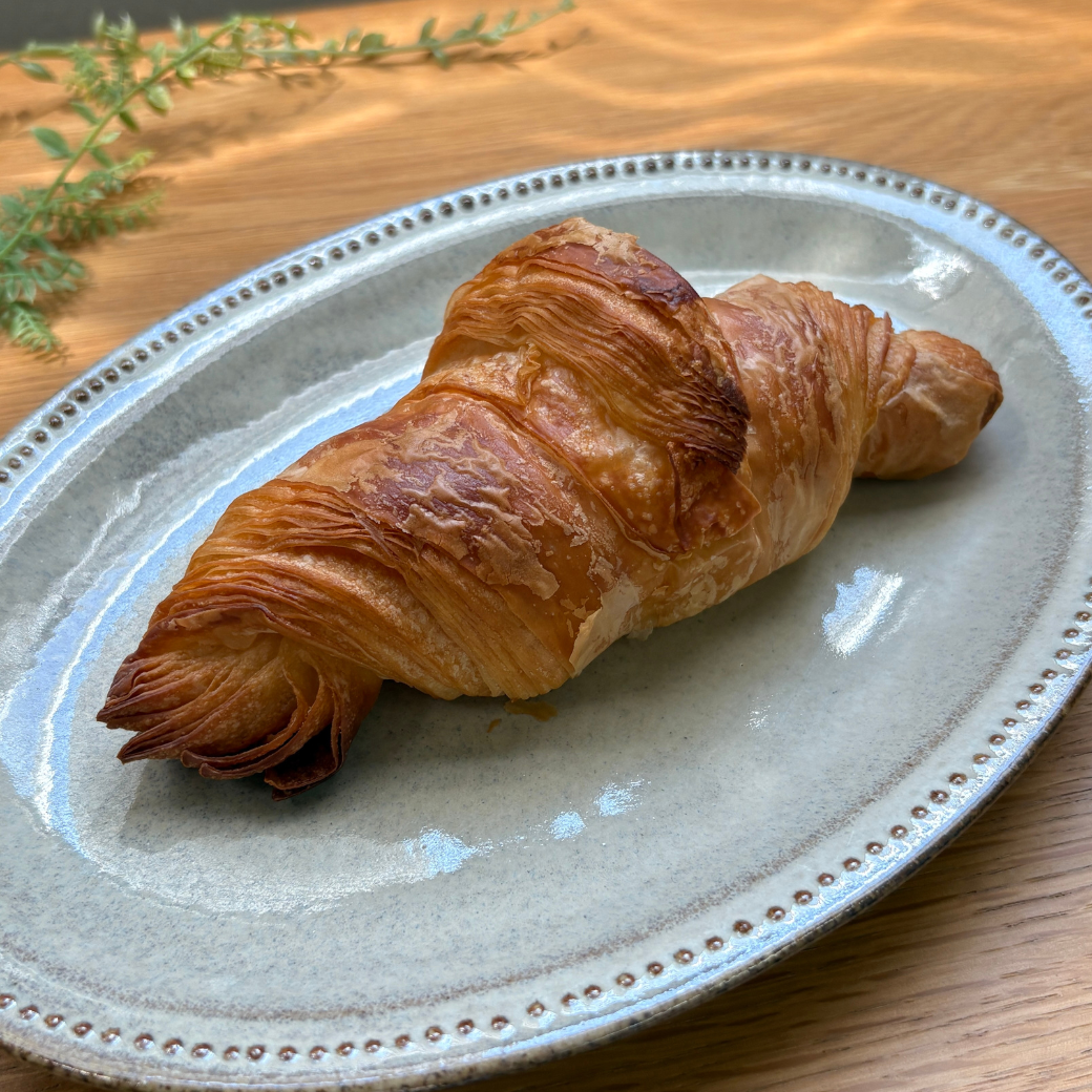 外側は軽やかに弾け、内側は小麦の優しい甘みがふわりと広がります。バターの風味を感じさせつつも重すぎない絶妙なバランスは、朝食にぴったり。1日の始まりに、美味しいクロワッサンをどうぞ。