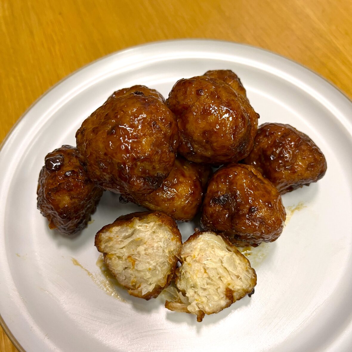ミートオオシマ名物の「チキンボール」は、ふわっと軽い食感としっとりした肉の旨みがたまらない人気商品。甘さとコクがほどよい“自家製の特製だれ”で仕上げており、どこか懐かしくほっとする味わいです。