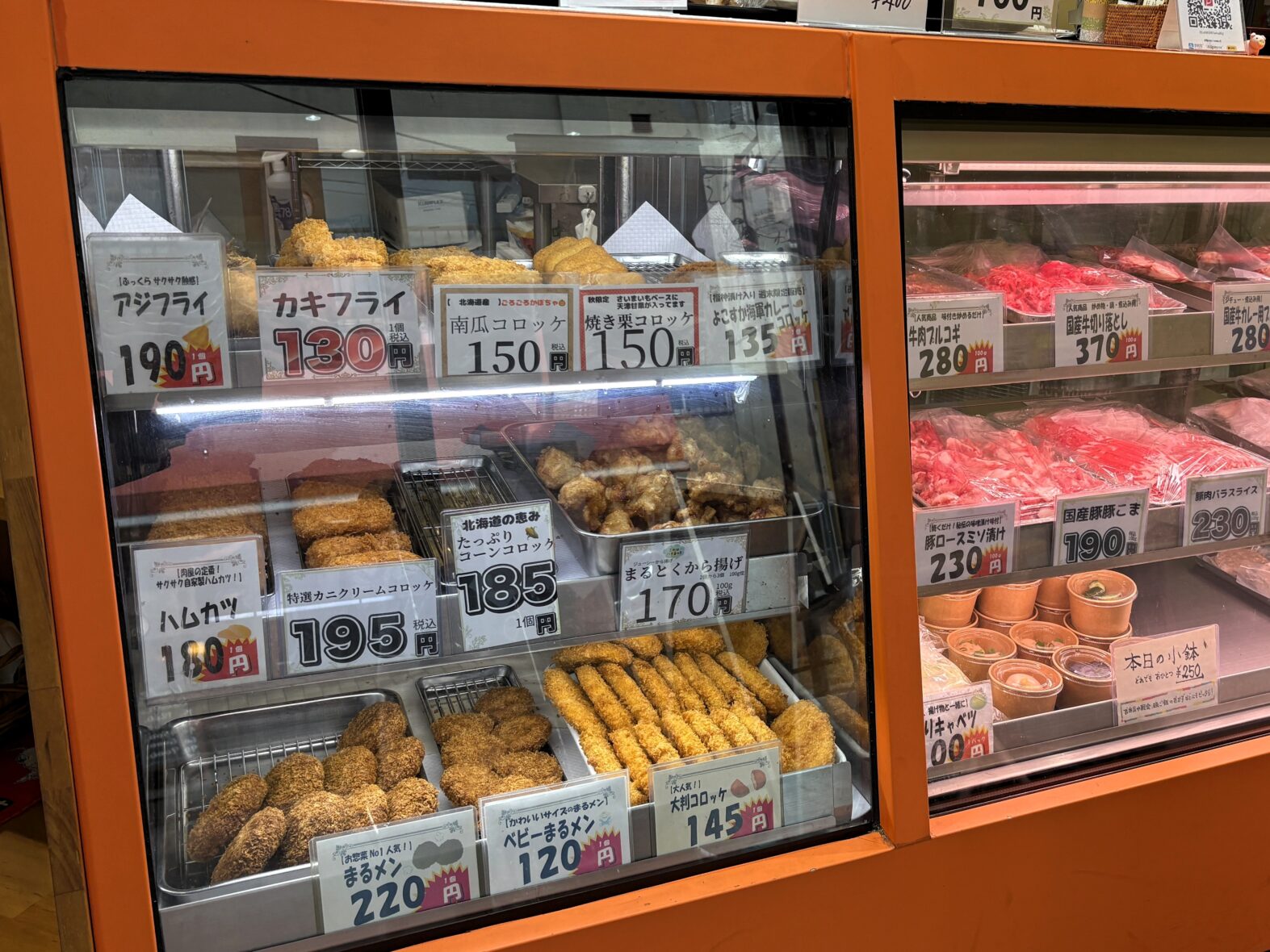 お肉はもちろん、平日にはメンチカツをはじめとした揚げ物に各種コロッケ、そしてリーズナブルで美味しいお惣菜も充実しており、特にランチ時と夕方には多くのお客さんで賑わう、街の頼れる存在。