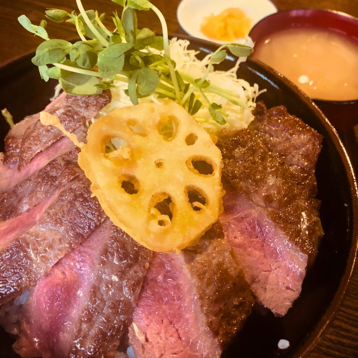 特に人気なのが「サーロイン丼」。180g(1,400円)と220g(1,600円)から選べ、柔らかく上質なサーロインを“外は香ばしく・中はしっとり”と絶妙に焼き上げています。お肉の下にはご飯がしっかり詰まっており、タレと肉汁が染みたライスまで抜群に美味しいと評判です。限られたランチタイムでも、上質な肉料理を手頃な価格でサクッと、そしてしっかり堪能できる満足度の高いメニューです。