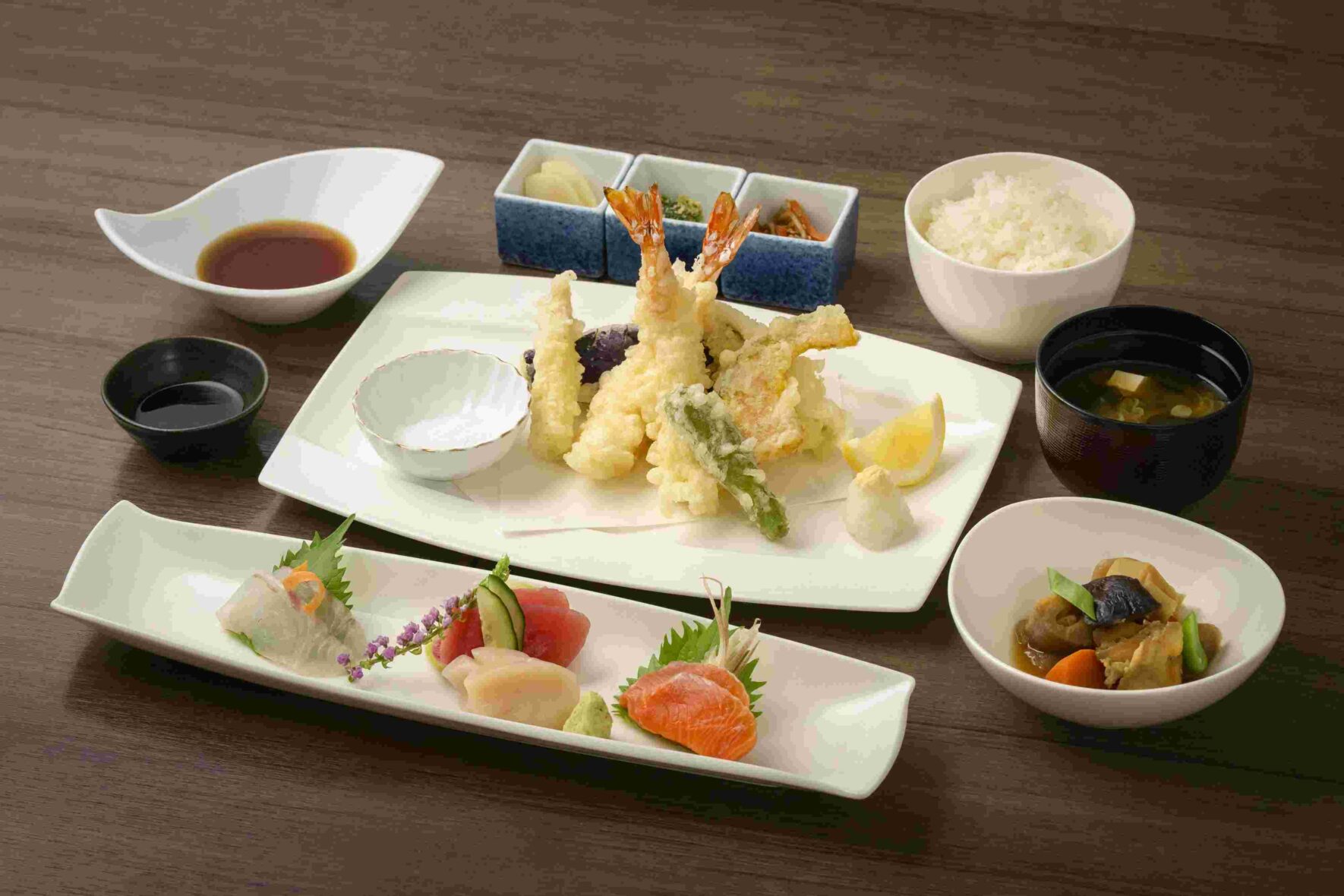 ランチのおすすめは、2日ごとに内容が変わる定食ランチ「エアラインセット(1,800円)」。和洋から選べるメインに、ドリンクバーやデザートまで付いた、空港内屈指のコスパを誇る充実の内容です。その他、海外ゲストにも人気の「とんかつ」や、コク深い「ハヤシライス」、「お刺身天ぷら盛り合わせセット」など世代を問わず愛されるメニューが揃っています。