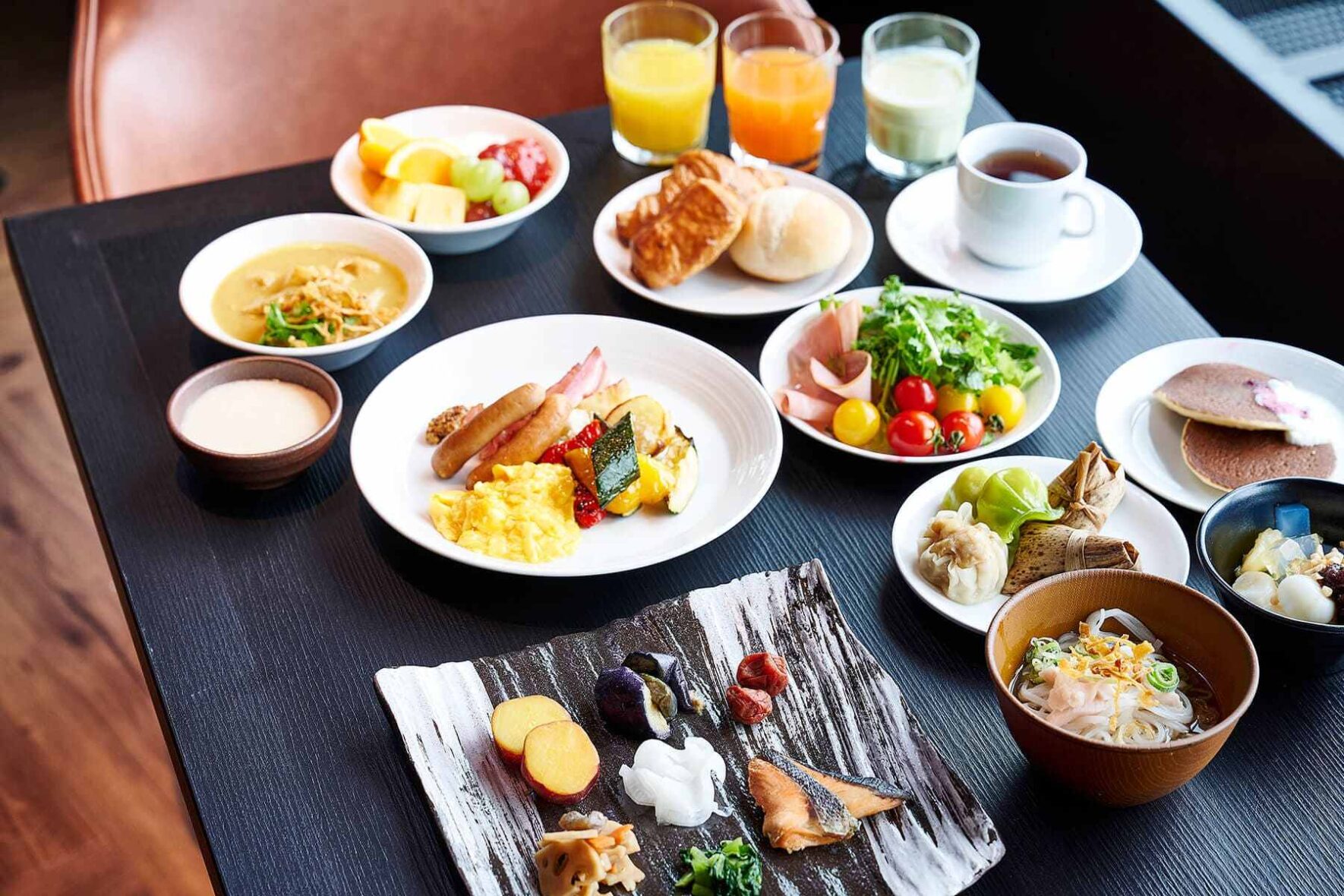 注目は、早朝6時から楽しめる約50種類の和洋多国籍ビュッフェ。あさりの旨みが染み渡る「深川めし」や熱々の点心、自分好みにカスタマイズできる日替わりのアジア麺など、目移りするほど充実したメニューが並びます。さらに日本橋の老舗「榮太樓總本舗」のあんを用いた江戸甘味など、細部まで“東京の粋”を感じるこだわりも。