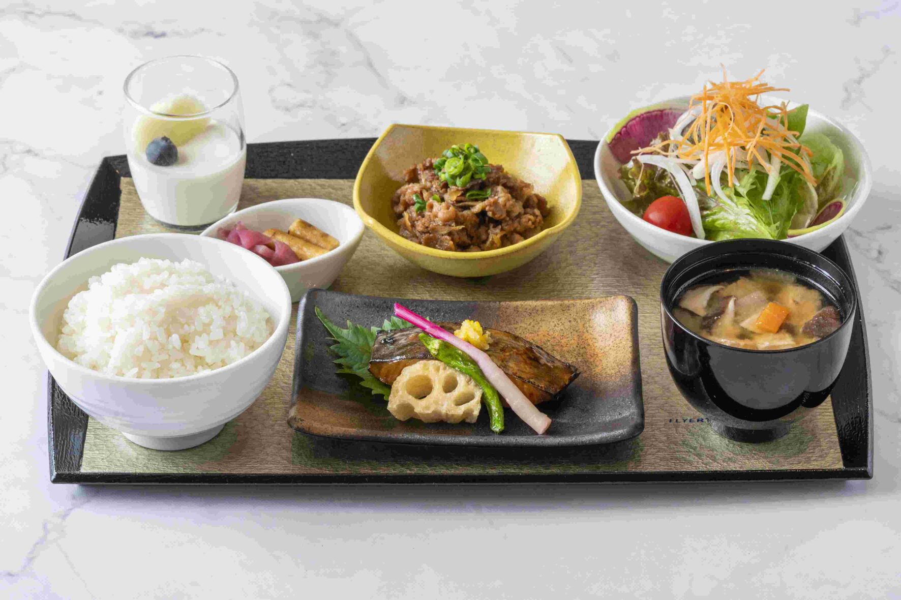 和食膳「鰆の幽庵焼き」は、柚子が香る幽庵地に漬け込み、ふっくらと焼き上げた鰆に、鮭と野菜の旨みたっぷりの石狩汁を添えた副菜まで満足度の高い一膳です。