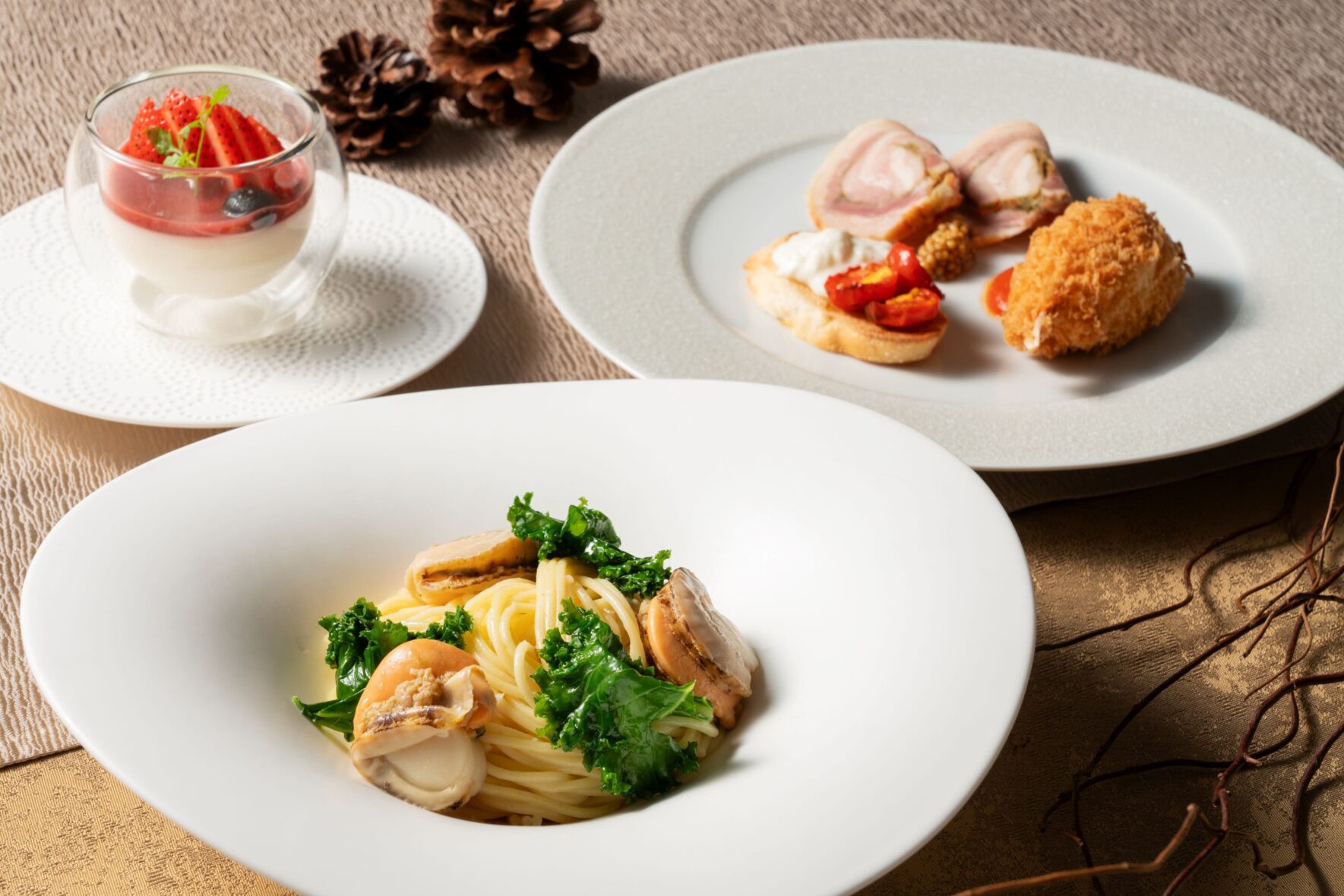 料理は、四季折々の旬食材にイタリアンの技法と和の繊細さを融合させた、モダンで上質なスタイル。前菜からデザートまで優雅に味わえる「Lunch Course」のほか、より気軽に楽しめる「Pasta Lunch」など、シーンに合わせて選べるラインナップが揃っています。