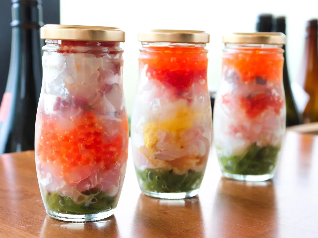 一番の注目は、岩手県のご当地グルメをアレンジした数量限定の「海鮮ビン丼」。豊洲を中心にその時期一番の産地から仕入れる魚介は驚くほど新鮮で、プリプリの歯応えが楽しめます。ビンから溢れ出すほどのボリュームながら、海鮮ならではのヘルシーさで女性でもぺろりと完食できるはず。日替わりのネタを自ら盛り付ける「体験」も、朝の気分を盛り上げてくれます。