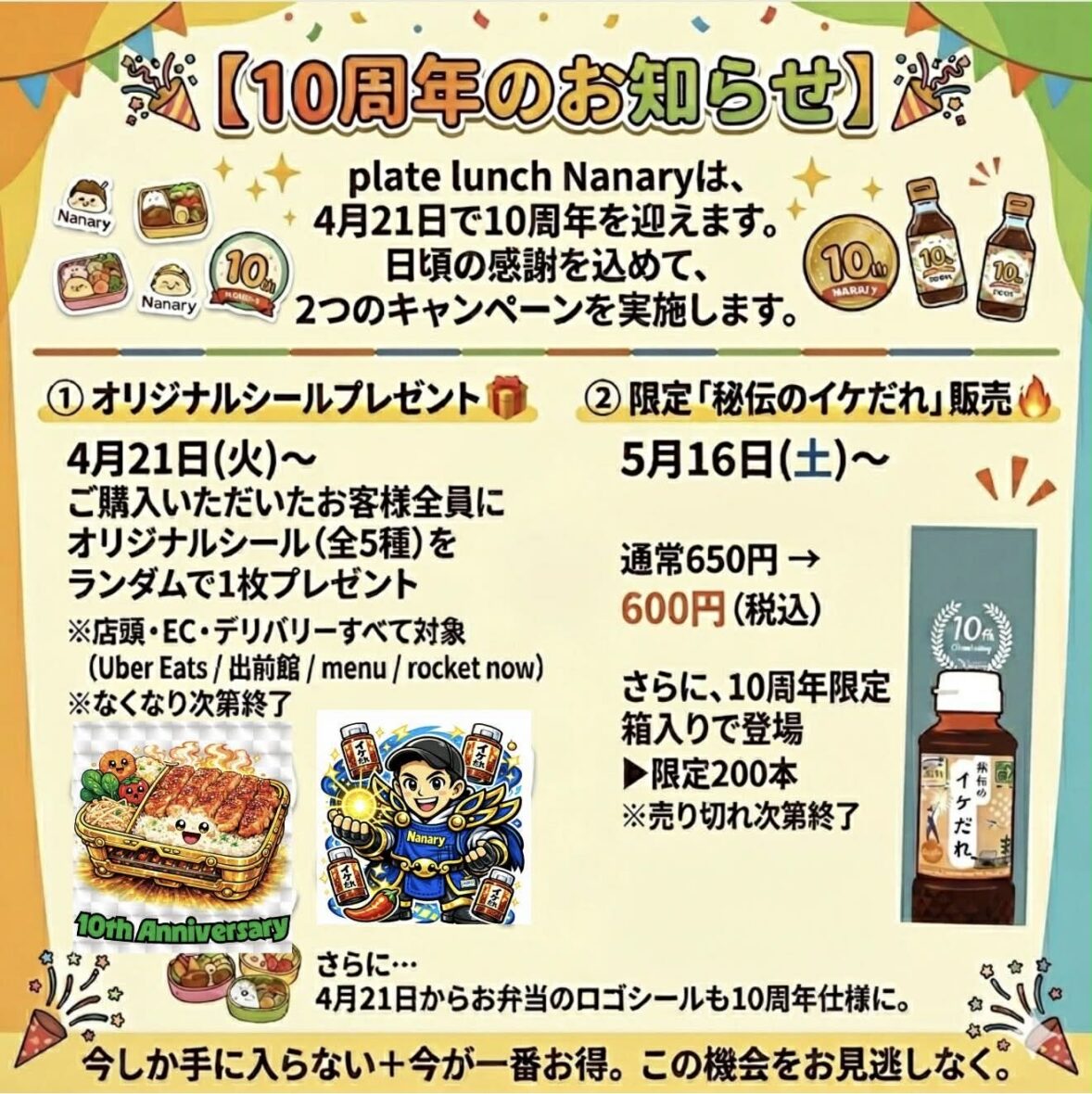 4月21日~お弁当についているロゴシールも10周年仕様になります♪