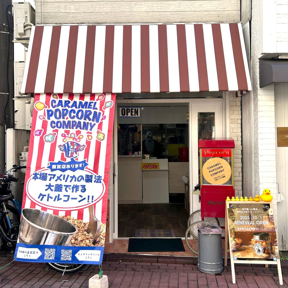 東急池上線「千鳥町」駅で親しまれていた「CARAMEL POPCORN COMPANY」が、2025年10月に同じく東急池上線の「雪が谷大塚」駅に移転し、リニューアルオープンしました。