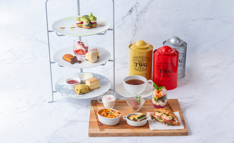 2階のカフェ&ダイニング「フライヤーズテーブル」は、開放感溢れるウッディ&モダンな空間の中で、ホテルならではのこだわりに満ちた料理を楽しめます。 朝食からディナーまで様々なシーンで利用でき、ご褒美スイーツにぴったりなパティシエ自慢のアフタヌーンティー(3種のTWG Tea付き)や季節のパフェ、飛行機シューも大好評です。