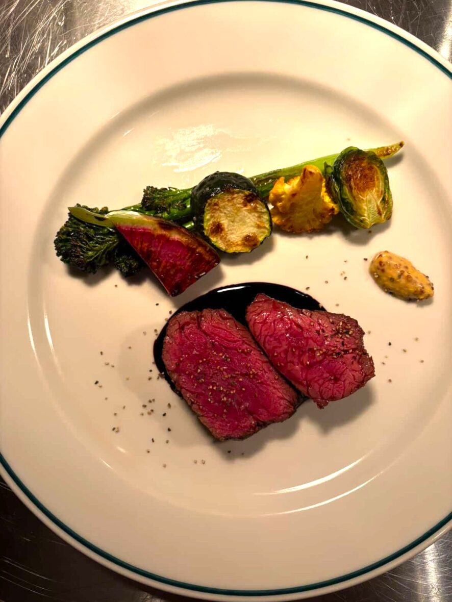 「お皿はキャンバス」と語るシェフの盛り付けは、息を呑むほどに色彩豊か。特に野菜の火入れには並々ならぬこだわりがあり、絶妙なタイミングで仕上げることで、素材本来の力強い食感と鮮やかな色味を両立させています。